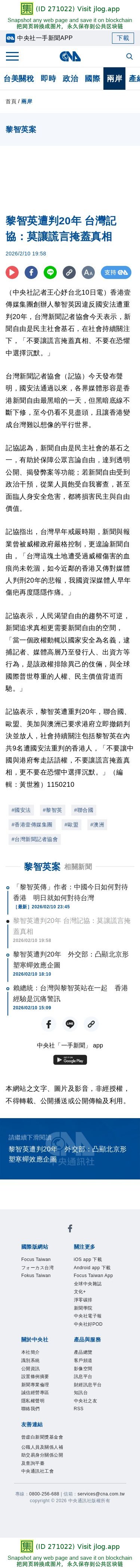 黎智英遭判20年 台灣記協:莫讓謊言掩蓋真相 | 兩岸 | 中央社 CNA