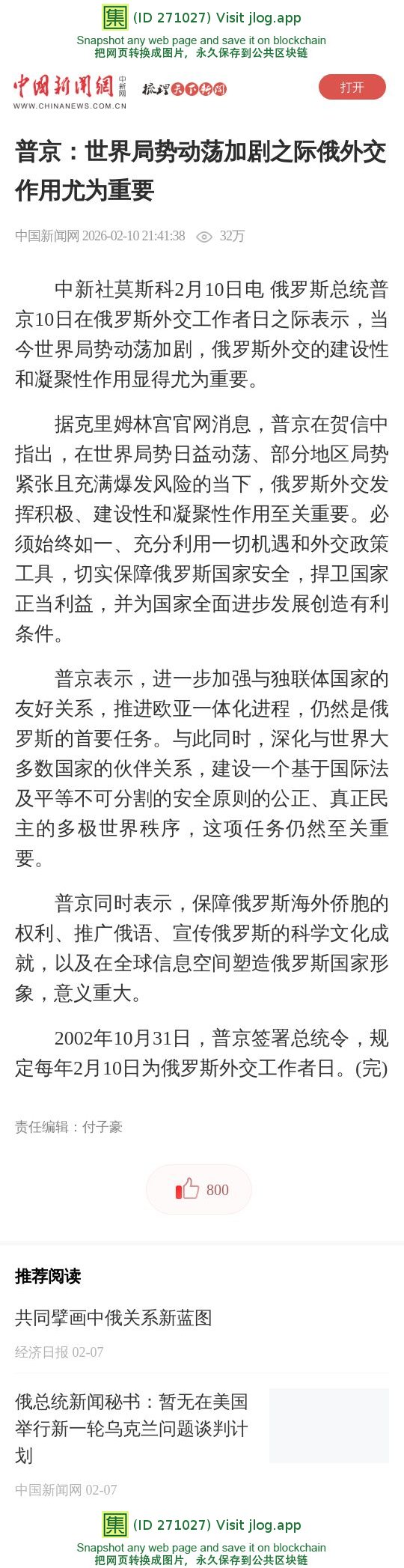 普京:世界局势动荡加剧之际俄外交作用尤为重要