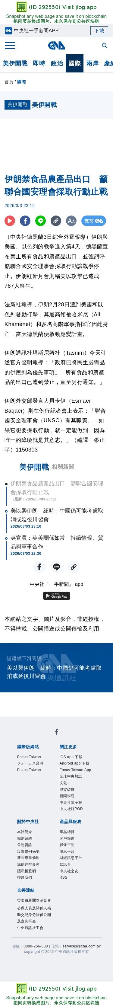 伊朗禁食品農產品出口 籲聯合國安理會採取行動止戰 | 國際 | 中央社 CNA