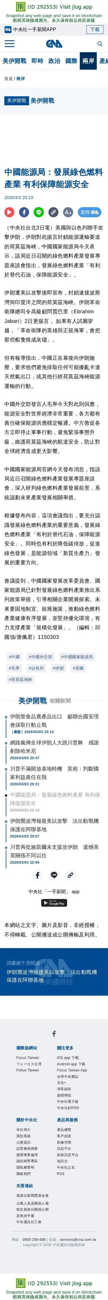 中國能源局:發展綠色燃料產業 有利保障能源安全 | 兩岸 | 中央社 CNA