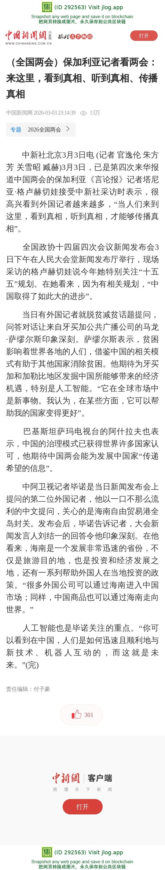(全国两会)保加利亚记者看两会:来这里,看到真相、听到真相、传播真相