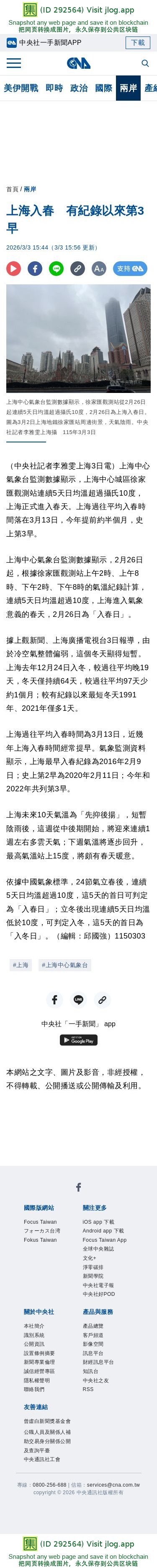 上海入春 有紀錄以來第3早 | 兩岸 | 中央社 CNA