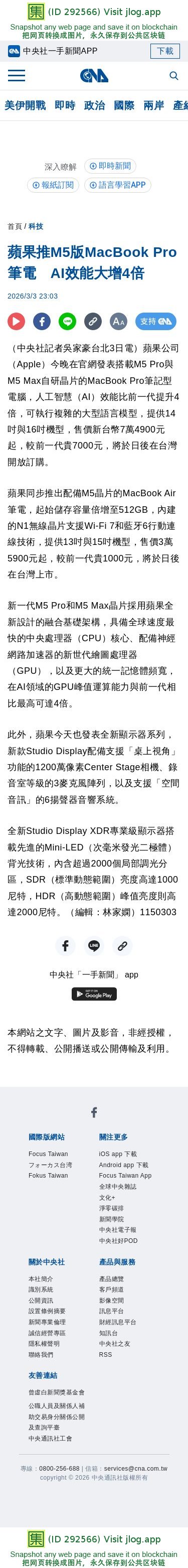 蘋果推M5版MacBook Pro筆電 AI效能大增4倍 | 科技 | 中央社 CNA