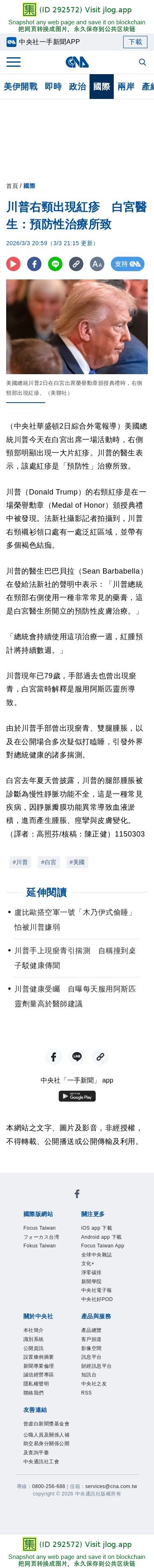 川普右頸出現紅疹 白宮醫生:預防性治療所致 | 國際 | 中央社 CNA