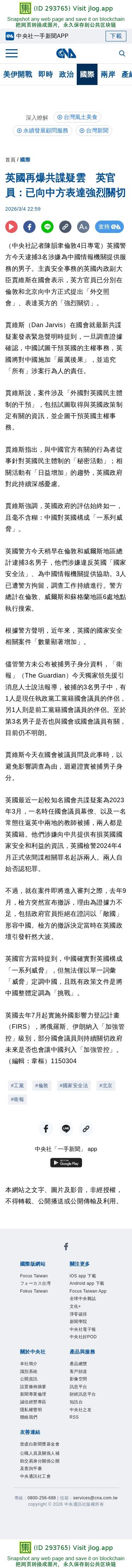 英國再爆共諜疑雲 英官員:已向中方表達強烈關切 | 國際 | 中央社 CNA