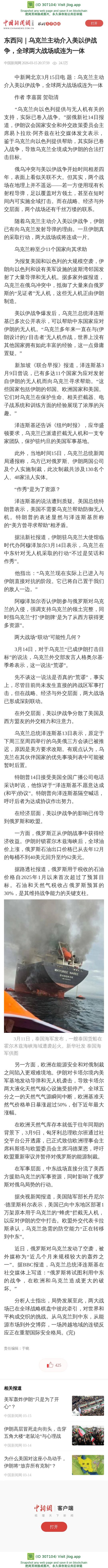 东西问|乌克兰主动介入美以伊战争,全球两大战场或连为一体