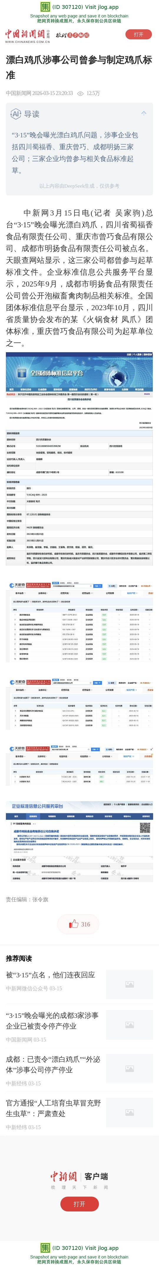 漂白鸡爪涉事公司曾参与制定鸡爪标准