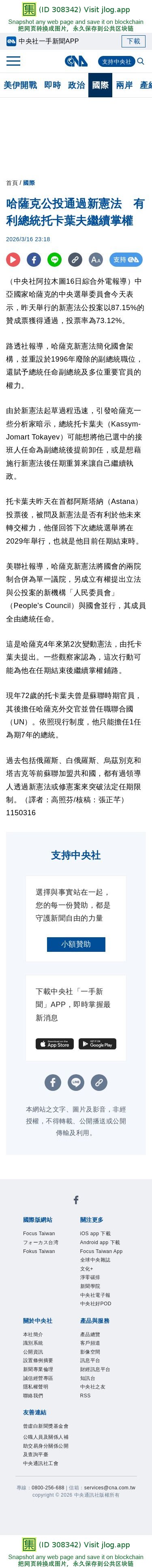 哈薩克公投通過新憲法 有利總統托卡葉夫繼續掌權 | 國際 | 中央社 CNA