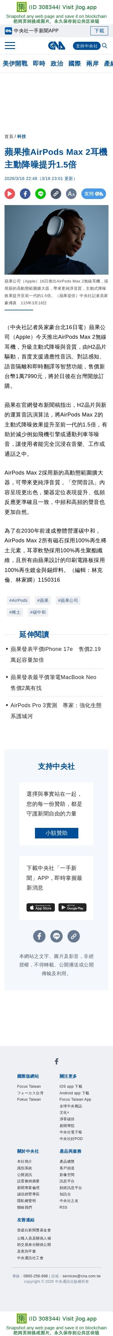 蘋果推AirPods Max 2耳機 主動降噪提升1.5倍 | 科技 | 中央社 CNA