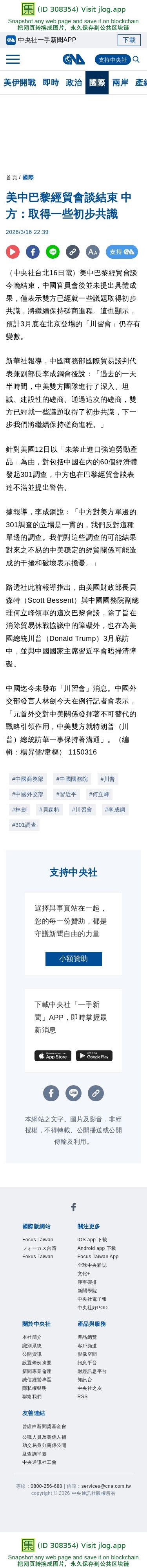 美中巴黎經貿會談結束 中方:取得一些初步共識 | 國際 | 中央社 CNA