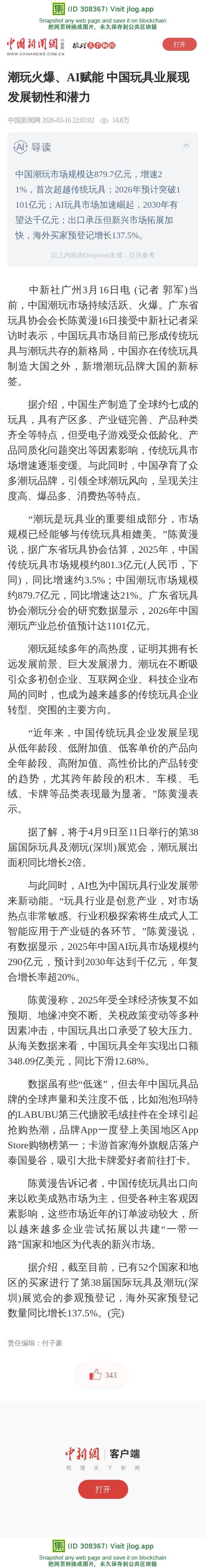 潮玩火爆、AI赋能 中国玩具业展现发展韧性和潜力