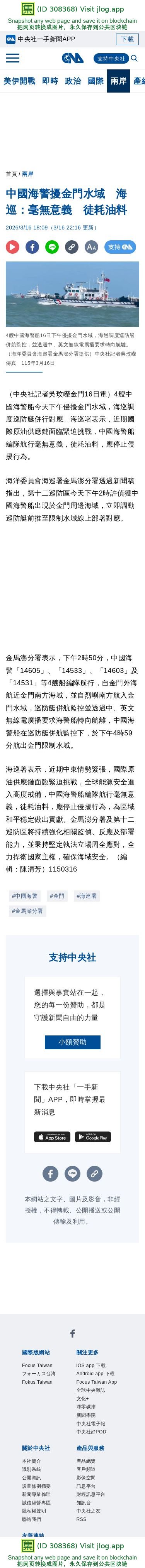 中國海警擾金門水域 海巡:毫無意義 徒耗油料 | 兩岸 | 中央社 CNA