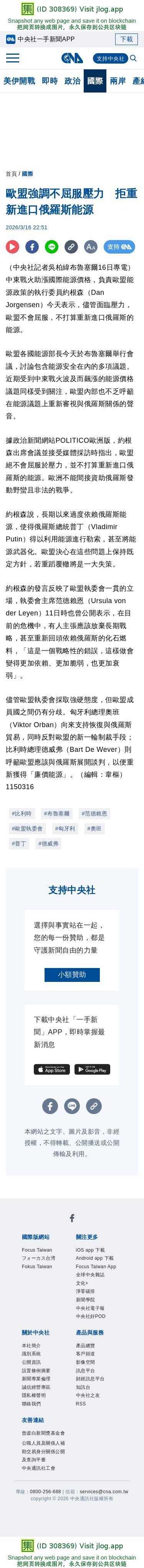 歐盟強調不屈服壓力 拒重新進口俄羅斯能源 | 國際 | 中央社 CNA