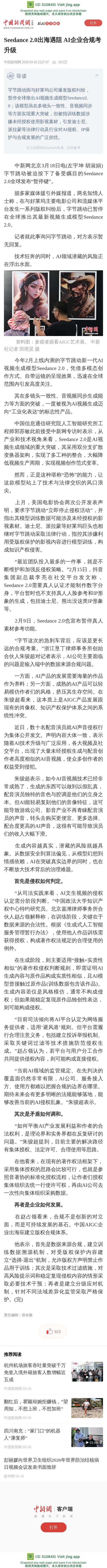 | Seedance 2.0出海遇阻 AI企业合规考升级 | 集诚信 | 5 | 2 | 03-19 09:36 |
