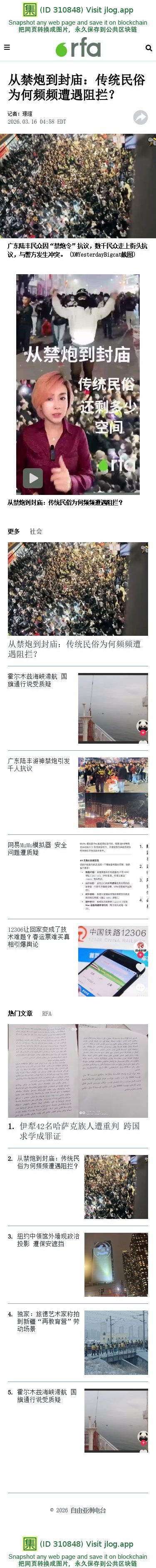 | 从禁炮到封庙:传统民俗为何频频遭遇阻拦? – 普通话主页 | 集诚信 | 7 | 3 | 03-19 09:39 |