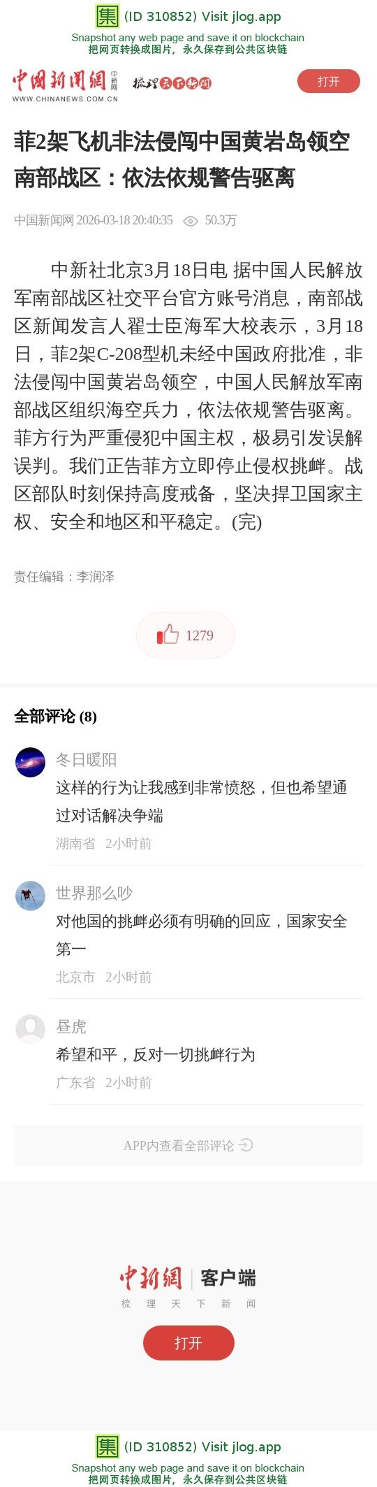 | 菲2架飞机非法侵闯中国黄岩岛领空 南部战区:依法依规警告驱离 | 集诚信 | 3 | 1 | 03-19 09:45 |