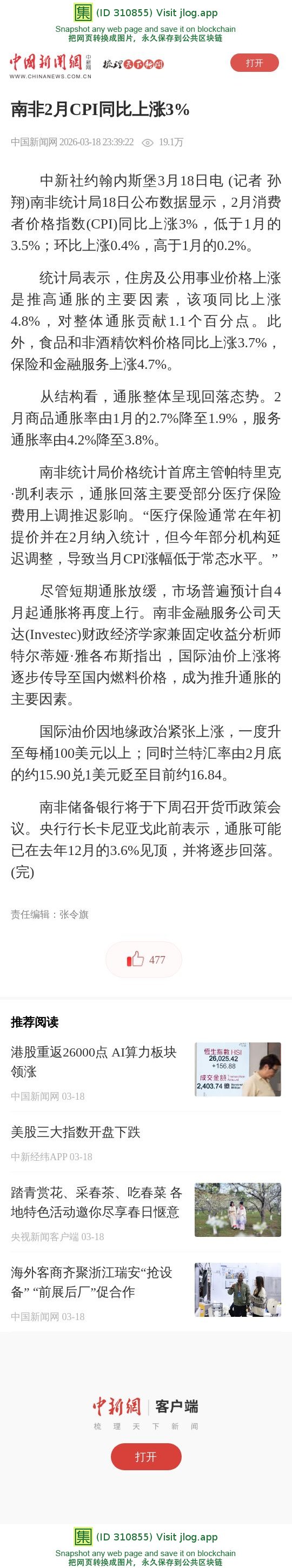 | 南非2月CPI同比上涨3% | 集诚信 | 3 | 1 | 03-19 09:56 |