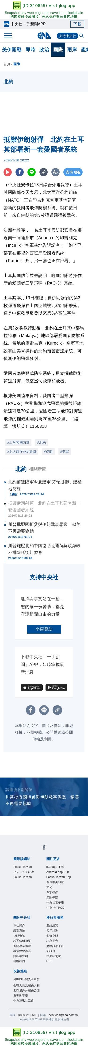 | 抵禦伊朗射彈 北約在土耳其部署新一套愛國者系統 | 國際 | 中央社 CNA | 集诚信 | 3 | 1 | 03-19 09:53 |