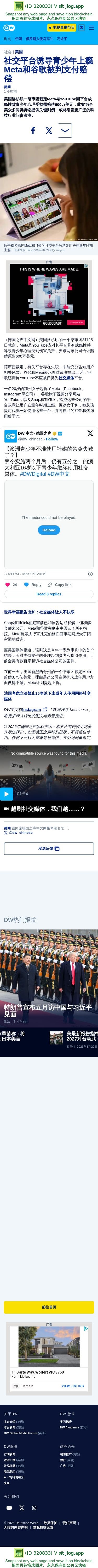 社交平台诱导青少年上瘾 Meta和谷歌被判支付赔偿