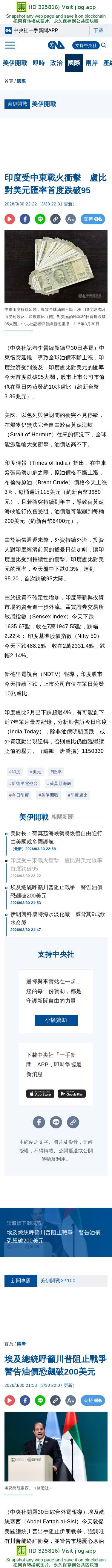 印度受中東戰火衝擊 盧比對美元匯率首度跌破95 | 國際 | 中央社 CNA