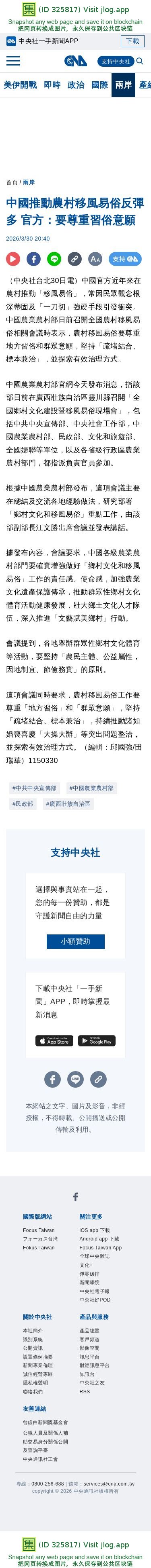 中國推動農村移風易俗反彈多 官方:要尊重習俗意願 | 兩岸 | 中央社 CNA