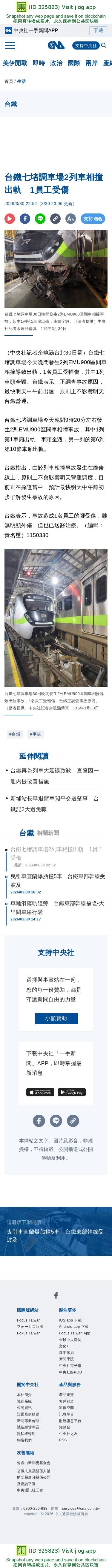 台鐵七堵調車場2列車相撞出軌 1員工受傷 | 生活 | 中央社 CNA