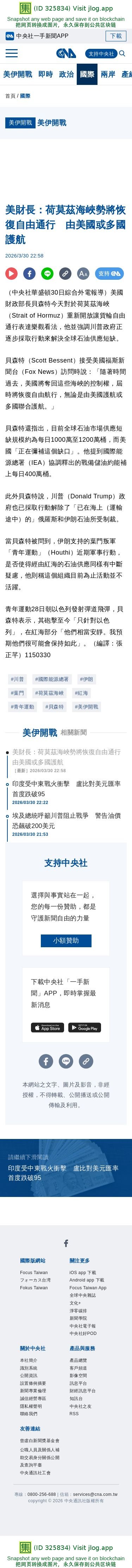 美財長:荷莫茲海峽勢將恢復自由通行 由美國或多國護航 | 國際 | 中央社 CNA