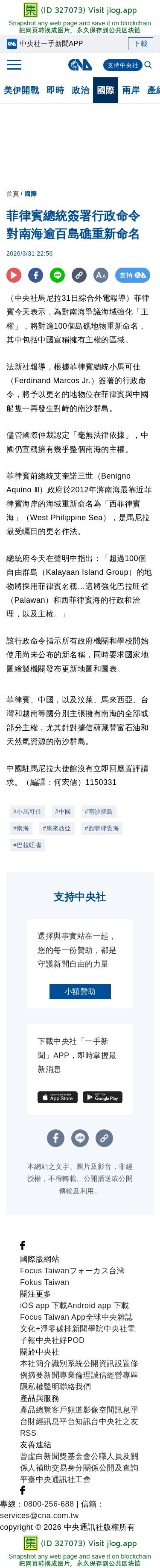 菲律賓總統簽署行政命令 對南海逾百島礁重新命名 | 國際 | 中央社 CNA