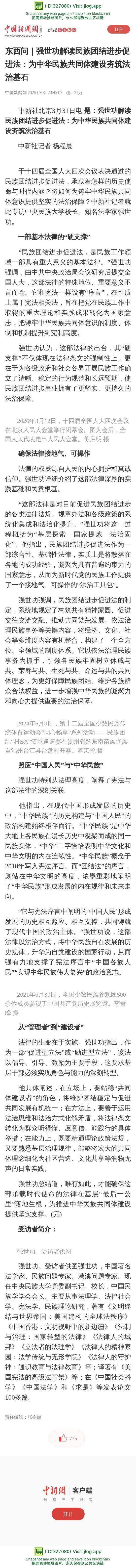 东西问|强世功解读民族团结进步促进法:为中华民族共同体建设夯筑法治基石