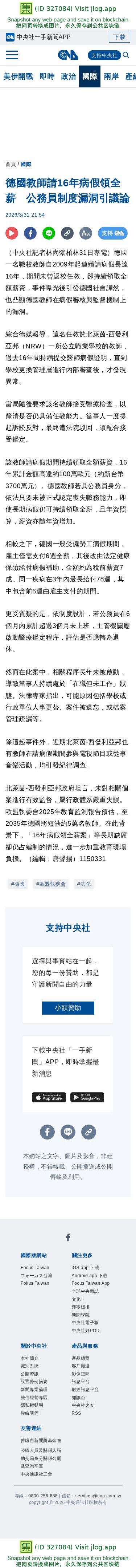 德國教師請16年病假領全薪 公務員制度漏洞引議論 | 國際 | 中央社 CNA