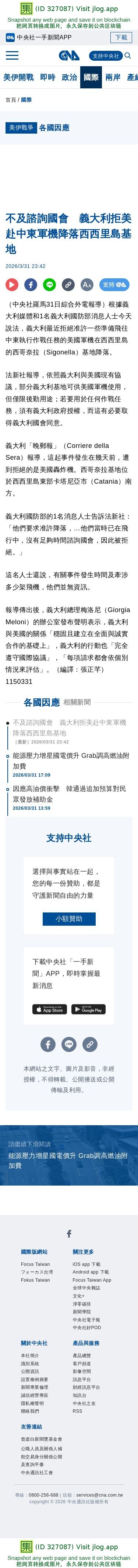 不及諮詢國會 義大利拒美赴中東軍機降落西西里島基地 | 國際 | 中央社 CNA