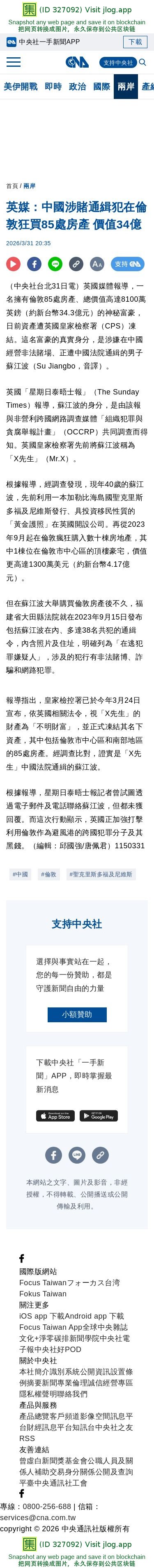 英媒:中國涉賭通緝犯在倫敦狂買85處房產 價值34億 | 兩岸 | 中央社 CNA