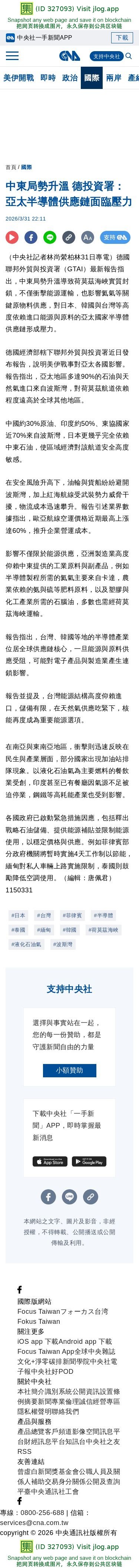 中東局勢升溫 德投資署:亞太半導體供應鏈面臨壓力 | 國際 | 中央社 CNA