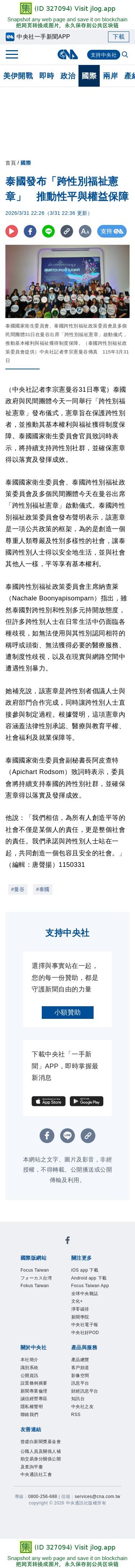 泰國發布「跨性別福祉憲章」 推動性平與權益保障 | 國際 | 中央社 CNA