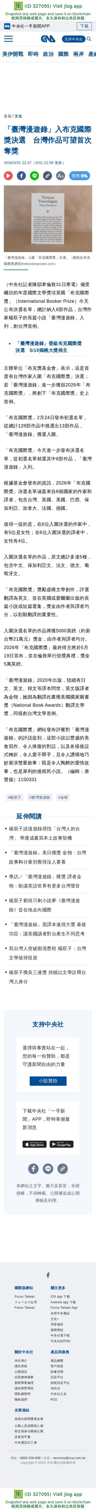 「臺灣漫遊錄」入布克國際獎決選 台灣作品可望首次奪獎 | 文化 | 中央社 CNA