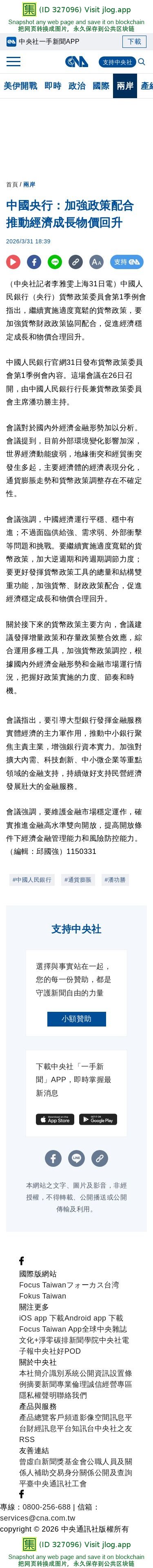中國央行:加強政策配合 推動經濟成長物價回升 | 兩岸 | 中央社 CNA