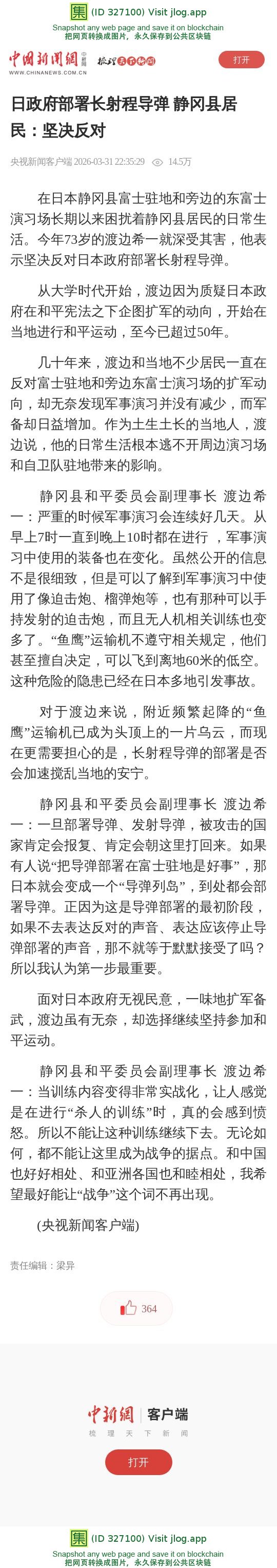 日政府部署长射程导弹 静冈县居民:坚决反对