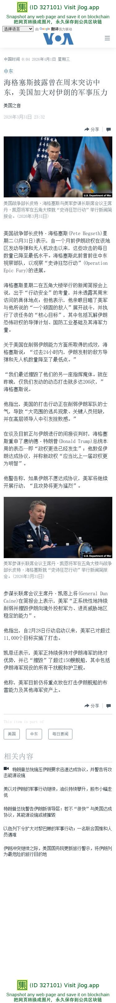 海格塞斯披露曾在周末突访中东,美国加大对伊朗的军事压力