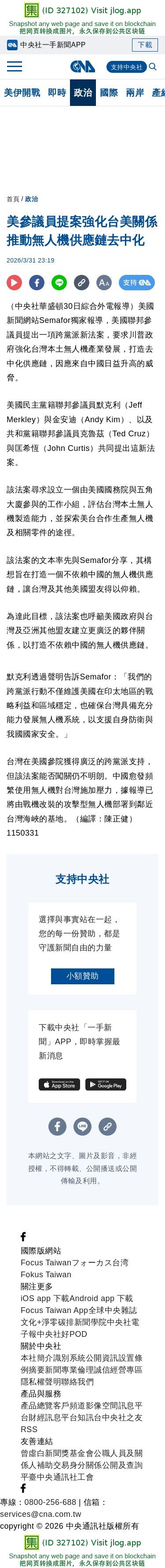 美參議員提案強化台美關係 推動無人機供應鏈去中化 | 政治 | 中央社 CNA