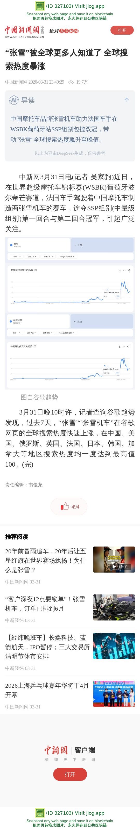 “张雪”被全球更多人知道了 全球搜索热度暴涨