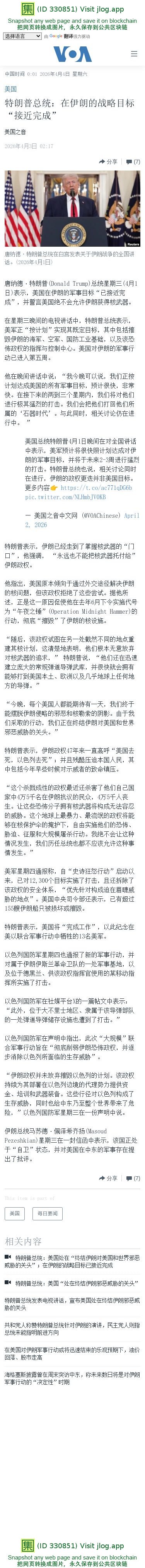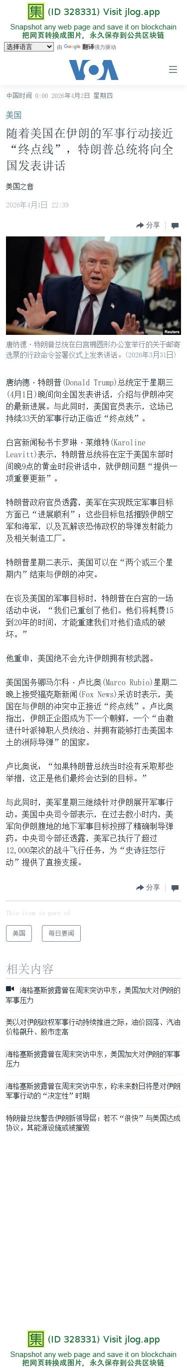 随着美国在伊朗的军事行动接近“终点线”,特朗普总统将向全国发表讲话