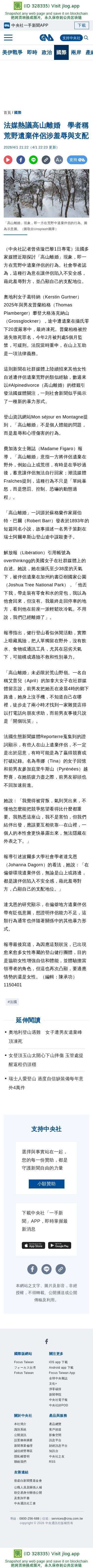 法媒熱議高山離婚 學者稱荒野遺棄伴侶涉羞辱與支配 | 國際 | 中央社 CNA