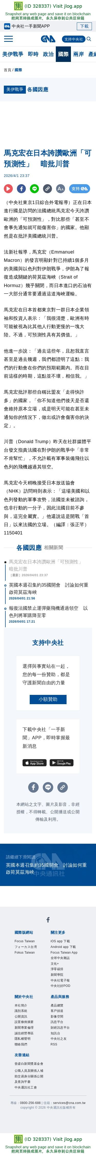 馬克宏在日本誇讚歐洲「可預測性」 暗批川普 | 國際 | 中央社 CNA