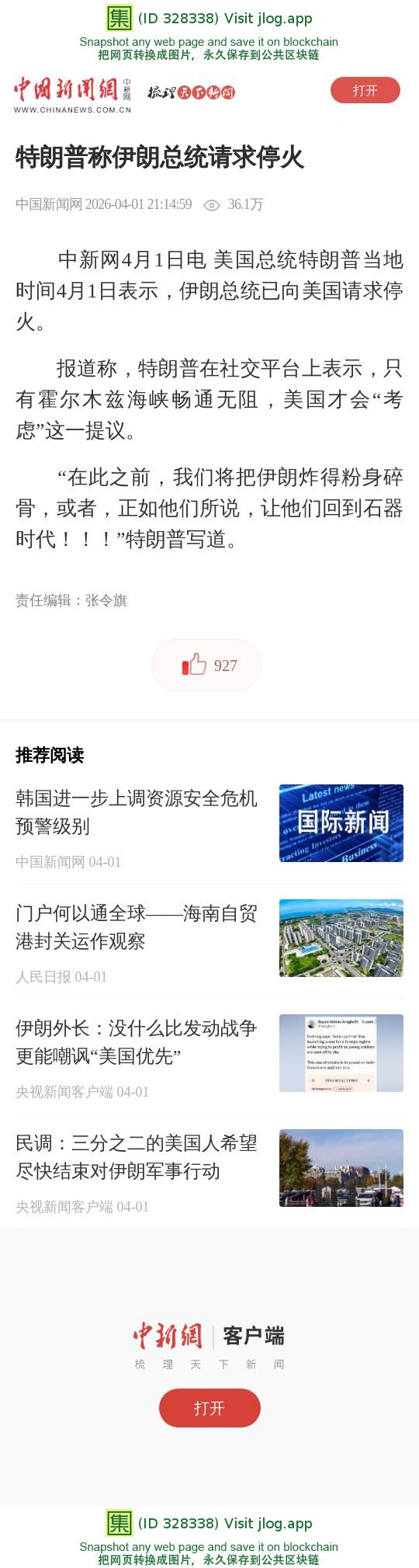 特朗普称伊朗总统请求停火