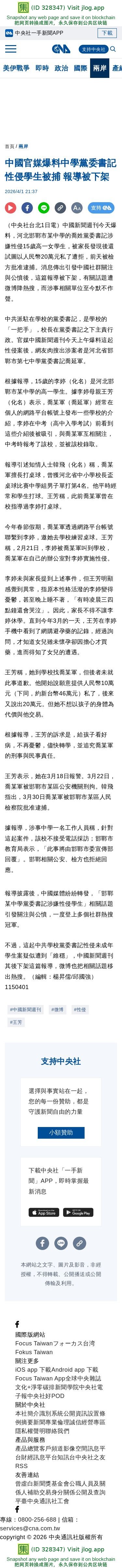 中國官媒爆料中學黨委書記性侵學生被捕 報導被下架 | 兩岸 | 中央社 CNA