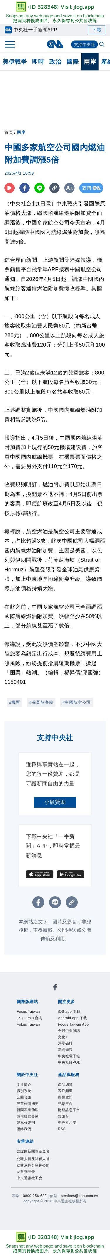 中國多家航空公司國內燃油附加費調漲5倍 | 兩岸 | 中央社 CNA