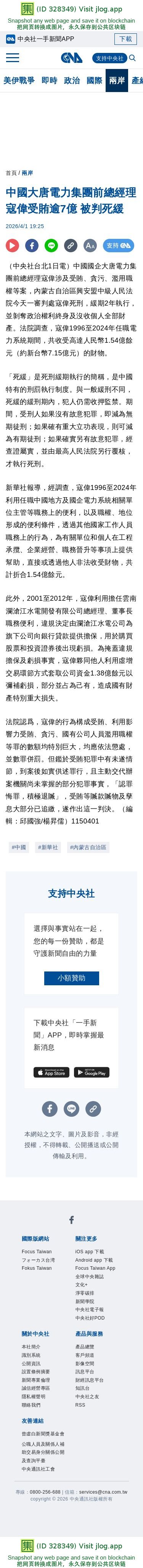 中國大唐電力集團前總經理寇偉受賄逾7億 被判死緩 | 兩岸 | 中央社 CNA