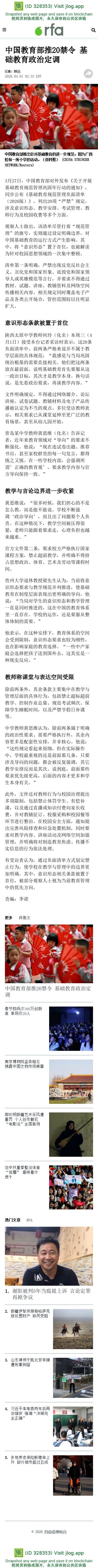 中国教育部推20禁令 基础教育政治定调 – 普通话主页