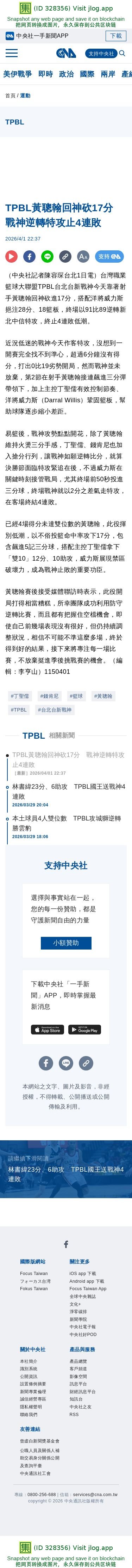 TPBL黃聰翰回神砍17分 戰神逆轉特攻止4連敗 | 運動 | 中央社 CNA