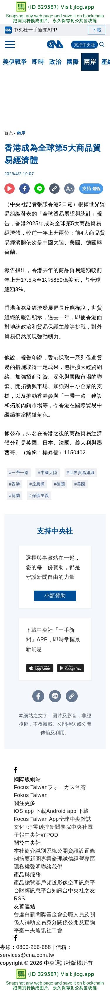 香港成為全球第5大商品貿易經濟體 | 兩岸 | 中央社 CNA